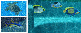 Aquatic Custom TileCeramic Tile Mosaic for use in swimming pools, backyards, showers or kitchens. Product comes meshed and ready to install.