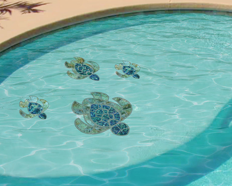 Our stunning swimming pool mosaics are created by the team here at our factory in Arizona. Family includes 1 - 24" x 24" with shadow 2 - 9.5" x 9.5" with shadows 2 - 6" x 6"