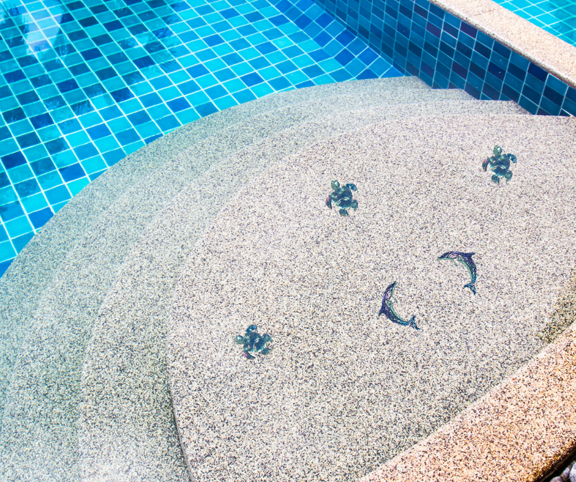 Aquatic Custom Tile Swimming Pool Step Marker Glass 2 Tone Dolphin 12.5 inches